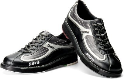 Description: Have the same advantages as the pros with the SST 8. Interchange both the sliding soles and the traction soles to give you the most precise slide to fit your game. Never worry about the approach again. Slide and switch until you get the perfect feel. *SE Models do not come with extra pieces* RIGHT OR LEFT HAND MODEL This shoe design does not match up well with bowlers who have "serious toe drag" Color: Black/Grey Alloy Full-Grain Leather Unique Total Interchangeable Sole Construction. Goodyear Replaceable Rubber Traction Soles. Right or Left Convertible New last with sleek silhouette for a more comfortable & stable fit at the widest part of your foot. On shoe (removable): S8, H5 Saw Tooth, T3, H2 Ultra Brakz.